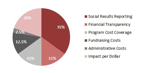 35% Results Reporting – a charity’s grade on the quality of its reports, its social results reporting